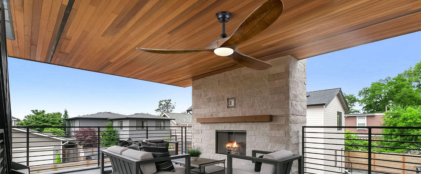 ABZ 60" Outdoor Ceiling Fans Without Lights, 60 Inch Wood Ceiling Fans no Light, 3 Blade Propeller Outdoor Fan with Remote Control for Patios Living Room Bedroom Porch, High CFM ETL Listed