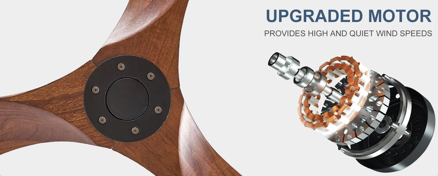 ABZ 60 Inch Ceiling Fans with Lights, Solid Wood Propeller Ceiling Fans with Lights and Remote Control Outdoor Ceiling Fan for Patios Propeller 3 Blades for Indoor Living Room, Walnut Wood
