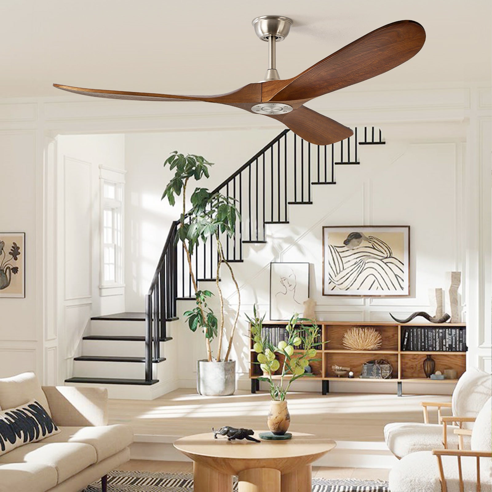 - 【Easy to Install】: Most of the functional components of our wooden ceiling fans are already assembled, and the installation is very simple, just a few steps. We offer poles in three different sizes for your desired scenario. 5"/10"/15" for low, medium and high ceilings.