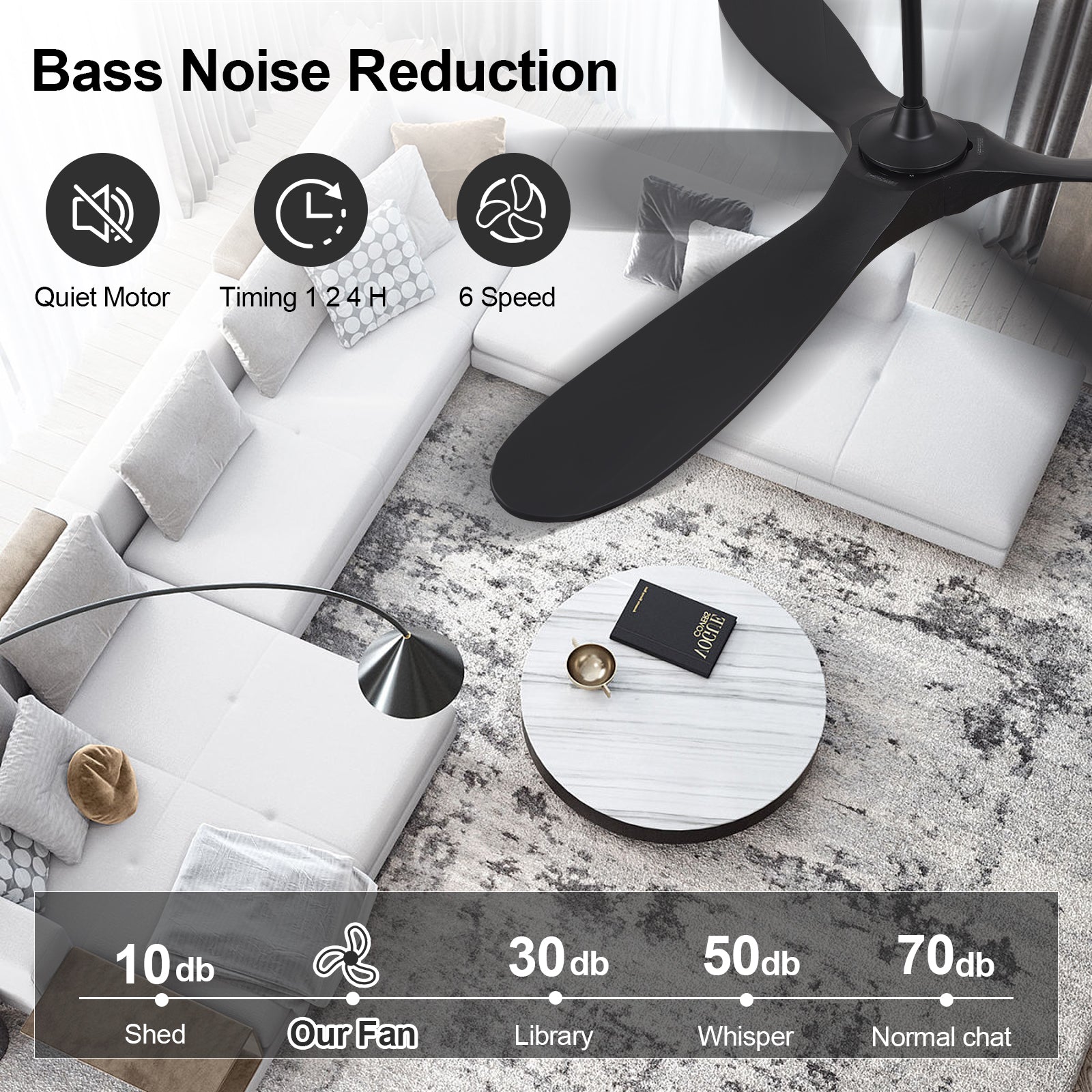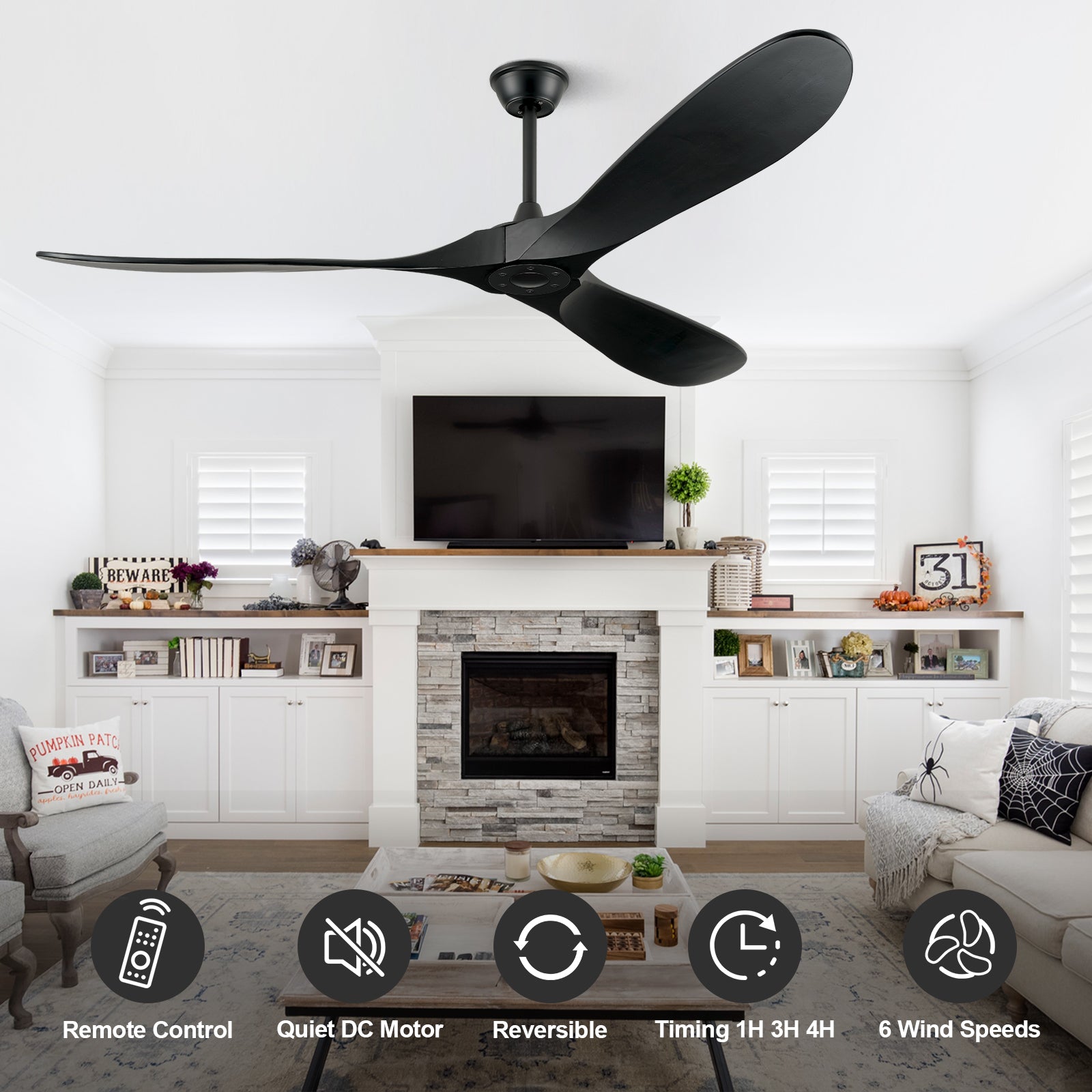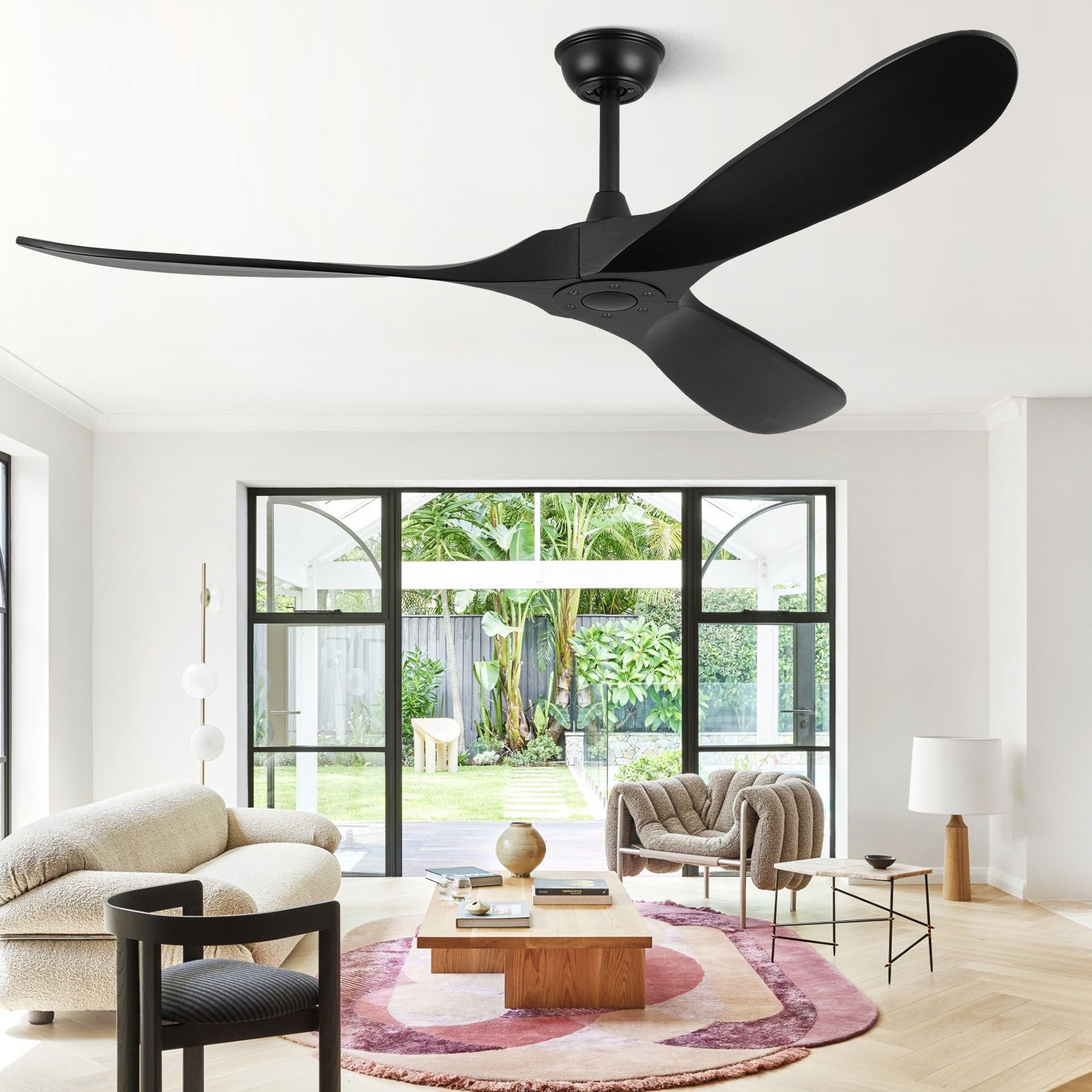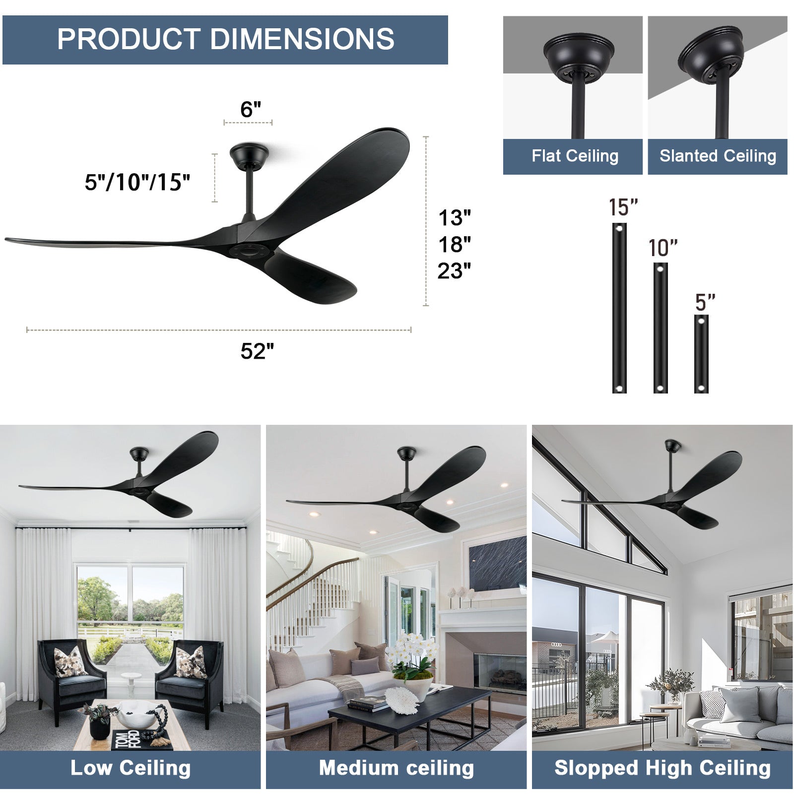 ABZ Ceiling Fans without Lights - 52 Inch Modern Ceiling Fans no Lights with Remote Control, Black 3 Blade Solid Wood Indoor Outdoor Ceiling Fans for Patios Living Room Bedroom Kitchen