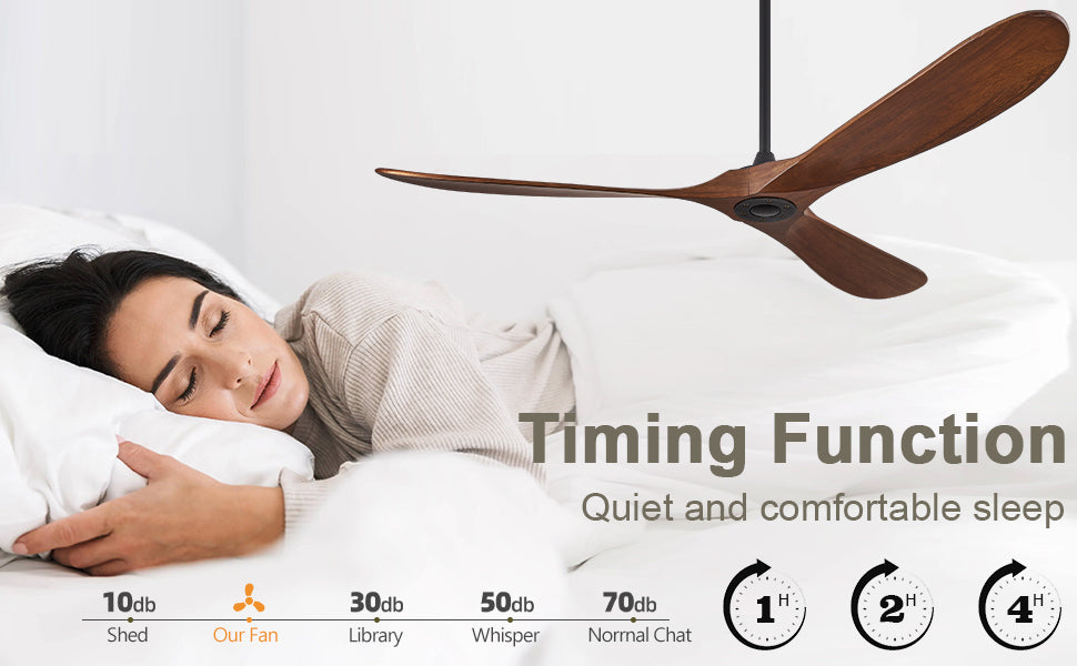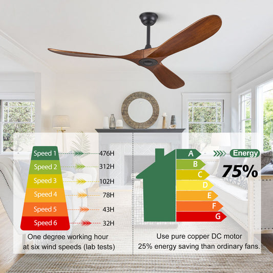 ABZ 60" Ceiling Fans without Lights, 60 Inch Outdoor Ceiling Fans no Light, 3 Blade Solid Wood Ceiling Fan with Remote Control for Patios Living Room Bedroom Porch